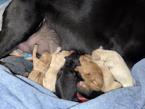 message a1w4ys about this ad My moms Lab is EXPECTING Goldendoodle Retrievers Due around Thanksgiving Sire: Goldendoodle, CGC title, 65 pounds, poodle-like fur that is easy to groom and sheds very little, low energy (couch potato) Health tested via Embark. Dam: Labrador, 75 pounds, Lab-like fur, low energy (also a couch potato gentle personality. Pups are expected to be black or white with coats ranging from Lab-like to wavy/curly. Lower shedding expected but not hypoallergenic. Pups are expected to be large, gentle, easy to train, and great family, therapy, or service dogs! Sire has produced one litter previously which produced medium sized, calm, and VERY intelligent pups. Pups come vet checked, started on crate training, and exposed to various stimuli. They will be raised indoors as family and started on housebreaking. They will be exposed to chickens. |