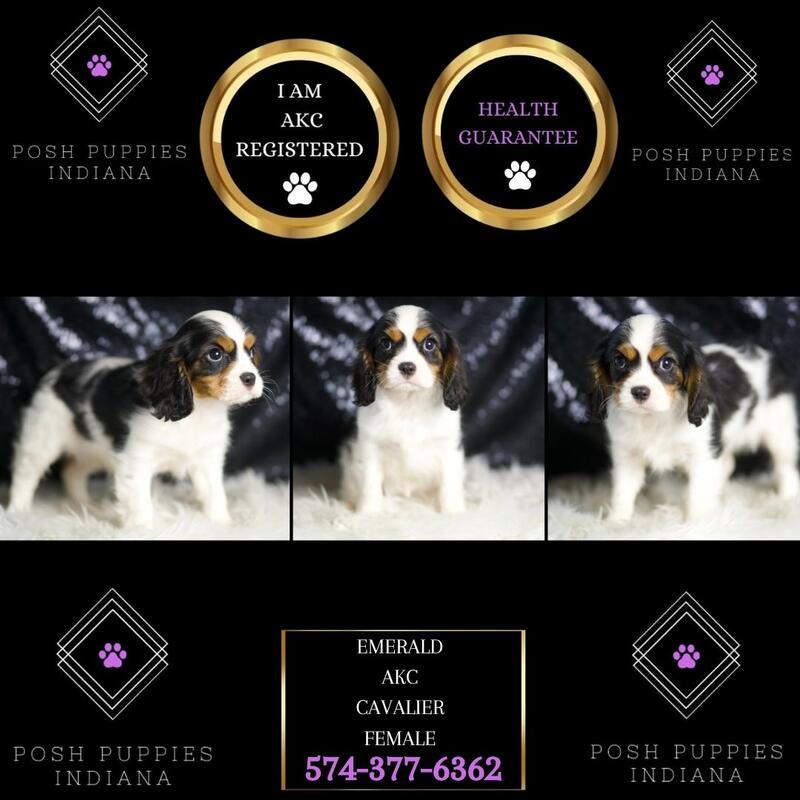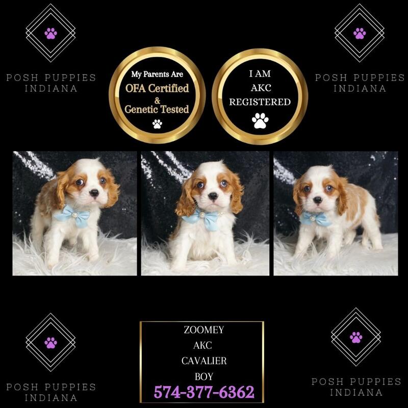 message poshpuppiesindiana about this ad CALL OR TEXT US TODAY 574-377-6362 Meet our AKC Cavalier puppies, ready to charm their way into your hearts! These adorable bundles of joy are eager to find their forever homes. With their fluffy coats and wagging tails, theyll bring endless love and happiness to your family. Dont miss out on the opportunity to bring home these irresistible companions. AKC Cavalier King Charles Spaniels for sale come from reputable breeders who prioritize the health, temperament, and conformation of the breed. These dogs have a silky, medium-length coat, a compact, graceful build, and a sweet, soulful expression. They are current with their shots and deworming, microchipped, started on puppy pads, come with a one-year health guarantee, and are pre-spoiled! Visit our website at poshpuppiesindiana.com or contact us today at (574)377-6362. Prices starting at $950 and up! |