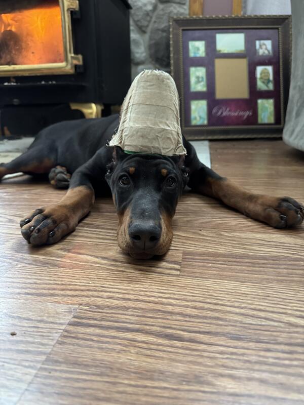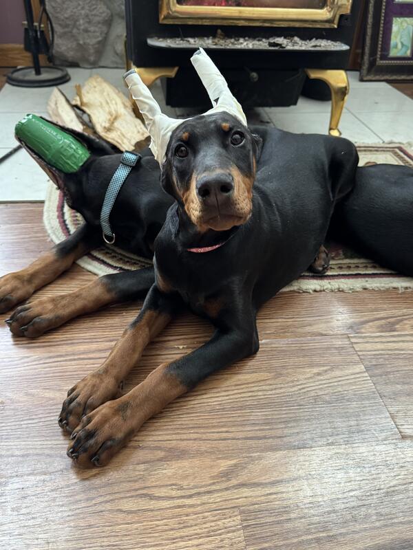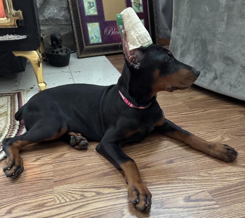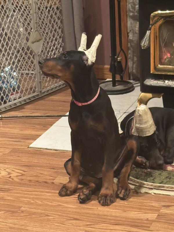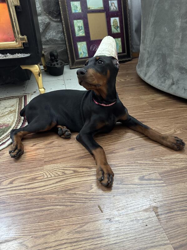 message tsweet about this ad AKC Euro Doberman female puppy born September 15, 2025. I've raised Dobermans on and off for over 30 years and take pride in the dogs that have developed from my program. My dogs have excellent temperaments, non aggressive but assertive, bold, intelligent, loving and beautiful with their bloodline stemming from Smart Wood Hills kennel in Russia, which they do a lot of showing. ( can lookup on Facebook Previous pups have grown to be loyal loving family companions, obedient specialized protection dogs, intelligent agility dogs, two have become K9's and two have successfully completed training at West Michigan K9 Academy for specialized protection. One of the trainers there told me that one of my female pups whom they called Nala was one of the best dogs that went through their program. Parents are health tested with longevity in lineage. All of the pups are black and rust, tails docked, dew claws removed, have been wormed biweekly, vaccinated 3x including rabies. Very nice pups. Serious inquiries only. Only one female left and only because I had her ears cropped so she couldnt go to a home until the ears were healed. Ears done by Dr Parraghi in Croswell who does a gorgeous elegant crop. Now stitches are out, ears are healed, posted and she is ready for her new home. She is a beautiful female with an assertive and sassy personality. She loves to play and antagonize. She likes toys, treats and snuggles. Has a good start on potty training, is wonderful in her crate with no accidents, goes right in and lays down. Very smart. Will be a joy to any home. $2200 message tsweet about this ad |