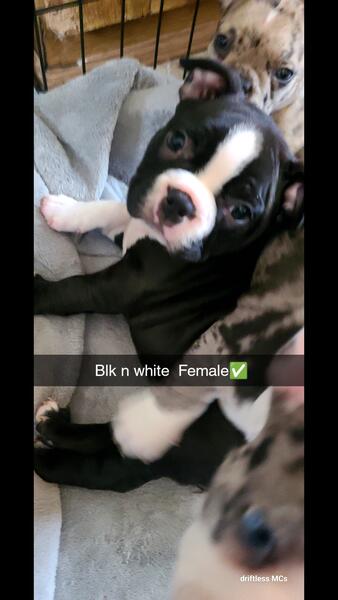 Males mearl n brindle 1100$ females blk n white 800$ available and ready Today