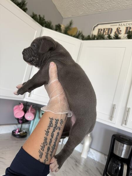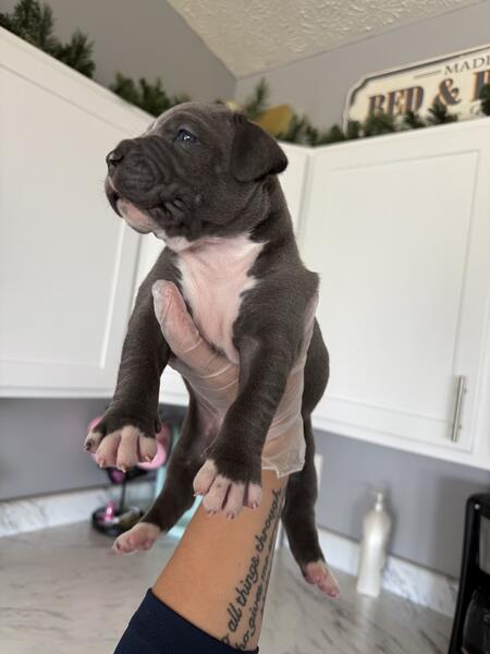 message pwrtr233 about this ad (Roscoe X Lila ) We have 4 big males off this litter two Merle and two blues they are ABKC will be up to date on shots and deworming also ear cropping is available as well mom and dad on site this is a repeat breeding since the last one turned out amazing can provide pics of the last litter as well we are taking deposits now for any questions or information call/text 740-8one7-one13four Blues 3500 Merle 5000 Facebook: madison hoar Facebook page: Powertrain bullies TikTok: Powertrain bullies |