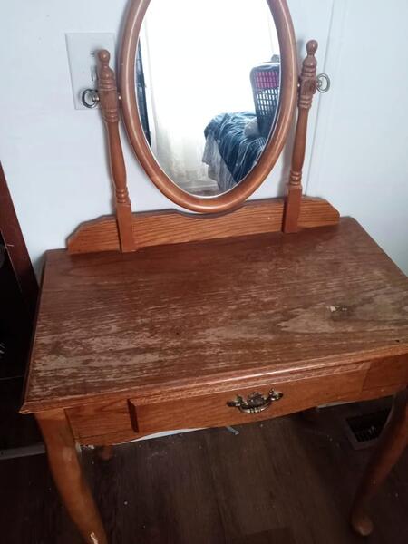 message jess44 about this ad Wooden vanity scuffed on top but can be refinished, with vanity mirror and drawer to store stuff, solid, 60.00 no holds pick up here only! princeton wv |