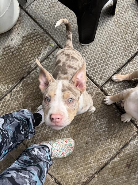 message bullymom2025 about this ad Kingston Ontario Born April 8th Vaccinated, dewormed, potty trained, socialized. Price is firm. Three females available Parents Mom- American Bully standard. Dad- American Bully Merle Tri XL |