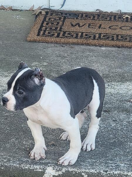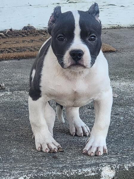 message royalbluebullies about this ad Hello we have a 11 week old Pie-Bald American Bully Female. She will come with ABKC REGISTRATION. Up to date on Vaccinations and ready for her forever home. Price is $1500. SERIOUS INQUIRIES ONLY NO YOU CANNOT SEND A FOUR DIGIT CODE WILL NOT RESPOND TO SCAMMERS |