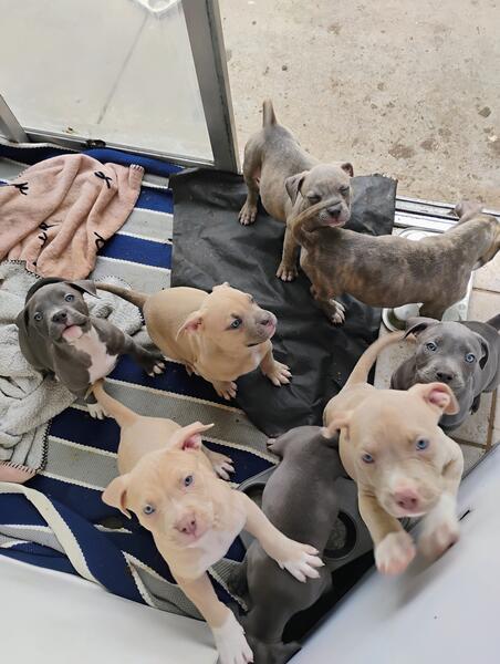 message fandbpitcorso about this ad Our unscheduled sweet pups are on the prowl for their perfect forever homes! *We are responsible, reputable and renowned breeders from California. While temporarily in ABQ for work, we had a surprise pregnancy! Born on April 5th, 2025 our pups will be ready to go home with you on June 28th at 12 weeks of age. *We have both males and females available. *Contact Bethany or Frank if you are ready to make one of our little loves your new family member. *Deposit and rehoming fee are very responsible for the circumstance, but required. *All details and more pictures are available anytime, just ask! *We will be hosting daily open houses for potential new families until each one has found their home. *Contact us to arrange a meet and greet with all the puppies and their mama this week! *Puppies are weened and on solid food. They were nursed exclusively for 6 weeks and still nurse once a day but are all eating a combination of solid dry food and homemade high protein and nutrient packed diet. *They are being potty trained and have been through basic behavioral training. They are kennel trained, update on all vaccinations and and are all complete individuals and total sweet hearts. We have both males and females available. Males are as follows: Boujie- The first born. He is solid grey or desired 'blue' with white socks and chest marking. His eyes have settled to light blue. He is bold and confident, super smart and full of charisma. He is built stalky and dense with muscle. Maximus- The second born. He has got a cane Corso face with light blue to ice eyes. He is solid gray or desired 'blue' with white socks and chest marking and a white dot on his neck (like his mom He is sweet and gentle and very sensitive. He is generous and playful and he makes sure that he is heard. Caspian- Is Lilac light Fawn colored which ice white eyes. He is the biggest of the bunch. The most patient, the most daring explorer and has the kindest heart and soul of the bunch! Princeton- He is Lilac light Fawn colored with ice white eyes. He is sensitive, cuddly, very brotherly always sharing and teasing. He is confident, opinionated and very sweet. Females are as follows: Aurora- Is Lilac Fawn and Blue Formento. She is absolutely stunningly beautiful inside and out. She is boldly courageous and unceasingly adventurous. She has taught them all how to get where she thinks that they should go. She taught the boys how to jump off the bed and the rest how to work together to escape the whelping area. She is ferociously sisterly, kind intensely playful and gentle but an advocate for her own needs. Alexis/Lexi- She is Blue-Fawn Brindle with amber eyes. She is deeply sweet and patient. She is gentle, thoughtful, teachers pet, loyal and a total goody two shoes. Phelony- She is Fawn-Blue Brindle with amber eyes and is completely gorgeous. She is smart as whip, a teachers pet, very sisterly and loyal. She is first in line to sit she a total lover and a complete pleaser. Cristina Agulara- Named because of her tiny body and very large voice she is blue from head to toe with white socks. She is very smart and determined. She is sweet and feisty yet very obedient. She has a huge heart and is a loyal loving sweet girl. Contact Bee or Frank if you are ready to make our little loves your new family member. Deposit and rehoming fee required. All details and more pictures available anytime. Also, set up a meet and greet with us. We will be hosting daily open houses for potential new families until each one is found. Come and meet all the puppies and mama everyday the he next 7 days. Puppies are weened and on solid food. They were nursed exclusively for 6 weeks and still nurse once a day but are eating solid dry food and daily homemade high nutrient based diet. They are being potty trained, have been through basic behavior training, are kennel trained, update on all vaccinations and and are all complete individuals and total sweet hearts. Which of our ladies or gentlemen is your potential new family member? message fandbpitcorso about this ad |