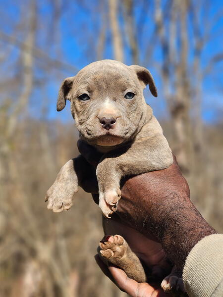 message kingkd about this ad I have 3 girls and 1 boy left from this litter of 8. They have their first shots and have been dewormed. ABKC registration paperwork in hand. Pics of parents are at the end. |