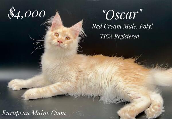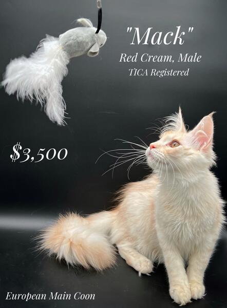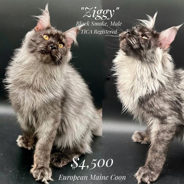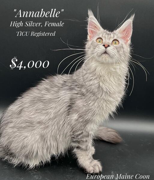 message laura1369 about this ad 100% pure European Maine Coon Kittens 1.All parents are direct European imports. Either from the most winning show lines in the world or from lines that are producing the rarest colors (Black Smoke, High Silvers, Blue Smoke etc 2.The Parents are dual registered WCF and TICA. The kittens are TICA registered. 3.These are not mixed with any of the American variety. The European variety is slightly larger with a "wilder" more "exotic" appearance but the same temperament. 4.These are difficult and expensive to import into the United States. 5.These are not cheap kittens but they are approximately 1/2 the price of comparable quality real European Maine Coon cats. 6.In the pictures I will include a copy of 1 of the "show" line males. So you can judge for yourself. Notice in just the first three generations.1 World Champion, 3 Grand International Champions, 2 International Champions, 2 Champions. Plus more World and International Champions in the fourth generations and beyond. 7.Some lines will even produce the sought after pollies message laura1369 about this ad |