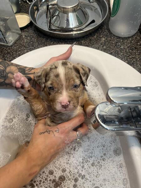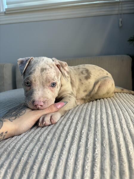 message sfbgm2281 about this ad Hello everyone, I have 7 beautiful purebred XL American bullies still available (all pictured are still available They are 6.5 weeks today so they will be ready to go home in less than 2 weeks (Jan 22nd These beautiful puppies were born November 27th 2024 and are all healthy and ready to find their forever homes. They ARE priced to sell because I am in the process of moving and need to have them homed as soon as possible, they will range in price from 2000-2800 depending on colour/sex. The ad only lets me post 10 photos so please dm me if interested in more photos of puppies, parents, grandparents, pedigree, etc which are all ABKC registered and show dog lines and come from amazing kennels in the US mainly; Bossy, MVP, Topdog, Blueberry, Colosus, etc. They will all come with a take-home puppy kit which includes a toy, puppy pads, poop bags, a sample bag of the food theyre currently on (blue buffalo wilderness beef for puppies a blanket with their mothers scent, and all necessary paperwork. The puppies are currently in Windsor Ontario (3.5 hour drive from Toronto Ontario) However, they can be delivered all over Canada and the USA through a dog transportation service for an additional fee. Currently available in order of photos: Male - chocolate tri with choc Merle face Female - Blue tri Merle (SOLD) Male - full chocolate Merle (SOLD) Female - white Merle Female - chocolate tri Females - 2x lilac tri twins Female - full chocolate merle (SOLD) Not pictured: Female - blue Merle (SOLD) message sfbgm2281 about this ad |