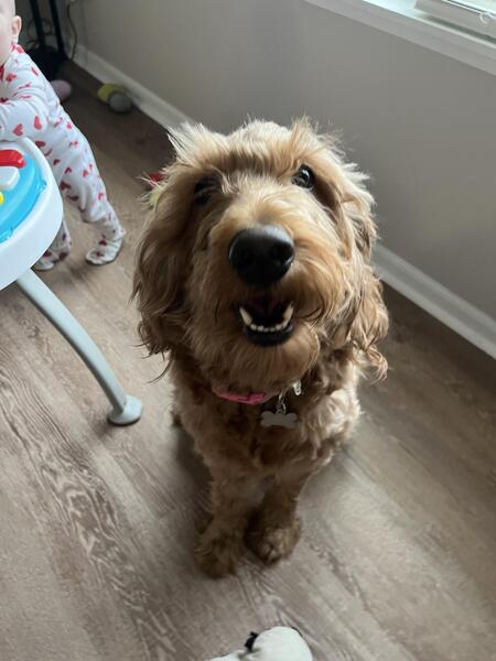 message cmnhrt7067 about this ad 3 year old female golden doddle needs rehomed due to family issues. Sweetest girl, needs a lot of attention because shes so lovey dovey. She does great with my toddler. Rehoming fee. |
