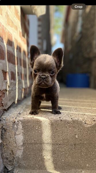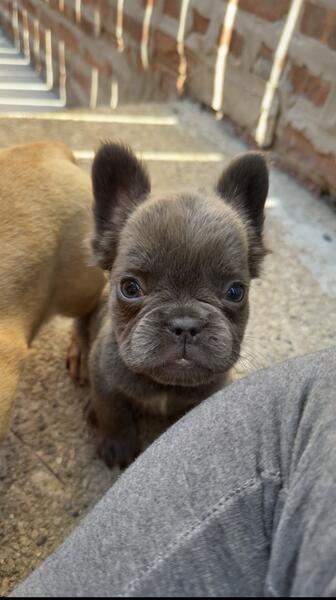 Boy Fluffy Frenchie hes 4months old , he was born on July 16 . Mom is color blue ivy & dad is a fluffy tan color.
