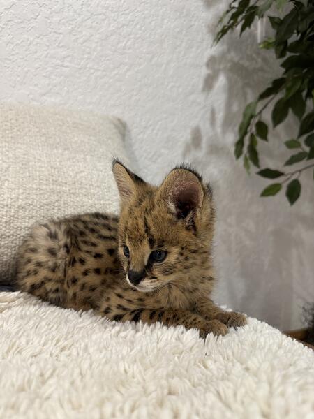 message lushsavannahcats about this ad We have one 6 week old African serval boy super friendly with people eating on his own. completely potty trained and at the perfect bonding age His price is 10,000 Text or call us at 305-384-5055 |