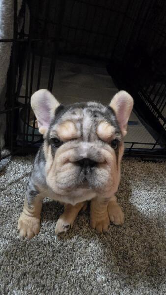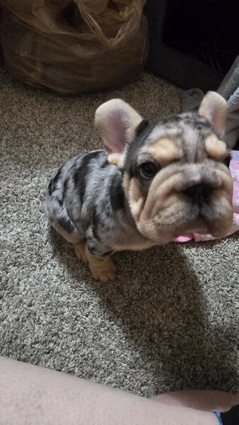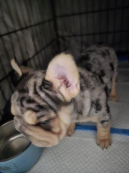 message frenchxconnection77 about this ad He is stunning looks just like daddy. He is a Black & Tan Merle Big rope Male with Intensity Orange Tan Points. Carries Cocoa, Blue, Cream & Fluffy ! Old School Von De Monarchia and Dorian BUFF Lines combined with these Rare traits. his Dna is Dd/nco/Ee/atat/Ll4. He is microchipped. Has his vaccinations and is very compact and full of wrinkles . This boy should mature at 18 lbs Dad is compact and beautiful. |