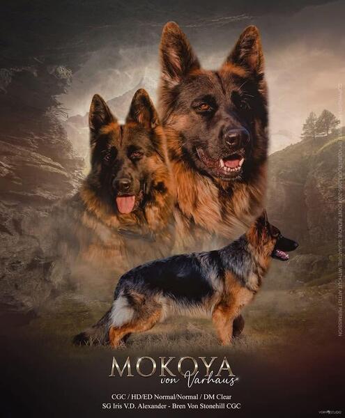message varhausgermanshepherds about this ad Whelped 9-30-25 Ready to go home Thanksgiving Week 2000 limited AKC 2 Black Males (2/2 Spoken For) 2 Black/Red Males (1/2 Spoken For) 2 Black Females 1 Black/Red Female SG Gvido Top Shepherd IPO1 KKL HD/ED: Normal/Normal DM Clear Mokoya Von Varhaus CGC HD/ED: Normal/Normal DM Clear Sample Pedigree Here Mokoya is an Iris daughter (Henko granddaughter) with a gorgeous black and red long-coat, a lovely broad head, and a stunning black mask. She has a lovely neutral demeanor and is low/medium drive. Her hips and elbows are rated A normal, and she is tested DM clear. 5x SG1 Iris VD Alexander BH, IPO1 HD/ED A, DM clear Iris comes from a long line of champion dogs including his sire, Henko, who placed 5th in 2018 & 2019 at the World Sieger show in Nuremburg, Germany. 2xVA5 BSZS Henko vom Holtkmper Hof IPO3 Kkl 1 SZ 2312796 Hip: SV: HD a-normal (a1) Elbows: SV: Normal Henkos sire, VA IPO3 Fight vom Holtkmper hof, was extraordinary, earning international recognition as one of the best producing male West German showline shepherds of his time. VA2(USA 2017) Fight vom Holtkmper Hof IPO3 Kkl passed Hip: SV: HD a-normal (a1) - Elbows: SV: ED a-normal The sire to this litter is the impressive Gvido. Gvido is a big boned 90lb male with a fantastic broad head and a gorgeous thick long coat. He is also rated A normal for his hips and elbows and he is DM clear. Gvido is the son of the famous VA2 Marcello V. legends Team IGP3, KKL HD/ED normal/normal, DM Clear At #2 in the World Seiger Show in 2022, Marcello is a true legend; the first Black male to make VA in Germany and in all the world. He is also the first Egyptian bred to make VA . message varhausgermanshepherds about this ad |
