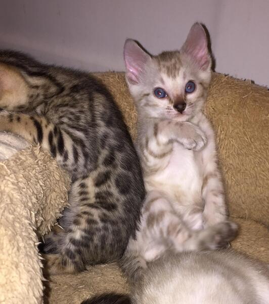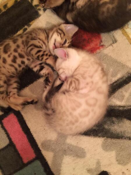 message twinklestar about this ad Male Bengal for stud service. The Male has had blood work taken to detect any genetic problems. He has an awesome fur coat. Guaranteed breeding. See pictures. The first picture is Cougar Ray. I breed him with a registered Bengal with great success many times. Producing beautiful kittens of all colors. I also breed him with a mixed black cat with no tail with great success in producing a few kittens with spots and no tail. All of the kittens looked like a bengal without a tail. Feel free to text or call 434-401-1795. for more information. No charge to breed, must have full physical with health certificate. |