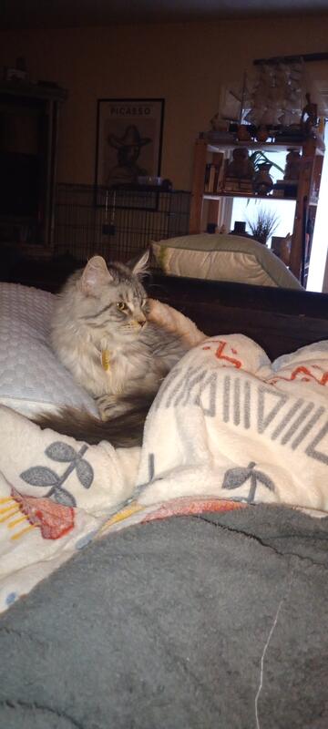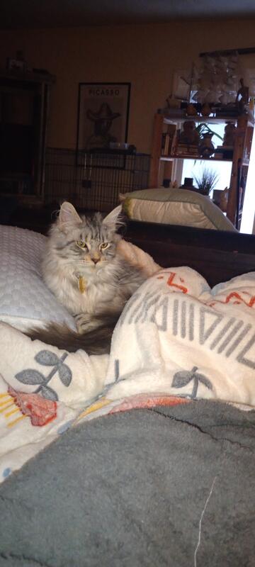 message triciad4329 about this ad Beautiful One Yr old female Maine Coon Silver shaded . She's a cute talker , very loving , litter trained she is a house cat her name is Chloe she is not spayed and comes from excellent bloodines. She is available now. Call or text me 9375595363 Nine three seven five five nine five three six three . She has been vet checked feline leukemia negative first vaccines. I don't have her TICA papers I can give you her breeders information if you want to pursue papers but that's up to the breeder . |