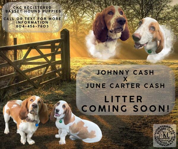 message wtlbassethounds about this ad Walk The Line Basset Hounds CKC Registered Basset Hound Puppies Waitlist No fee to be put in waiting list. Call or Text 804-456-7603 for more information. Sire: Johnny Cash Dam: June Carter Cash Johnny Cash (Sire) is a Red and White Long Haired Basset Hound (CKC Registered) June Carter Cash (Dam) is a Lemon and White Short Haired Basset Hound (Dual Registered AKC & CKC) First shots at 6 weeks old Vet Health Clearance Dewormed at 2,4,6,8 weeks Bag of puppy chow Puppy pad for ride home Mom/sibling blanket (comfort for puppy with there scent) Puppy toy Life time support from Walk The Line Basset Hounds. |