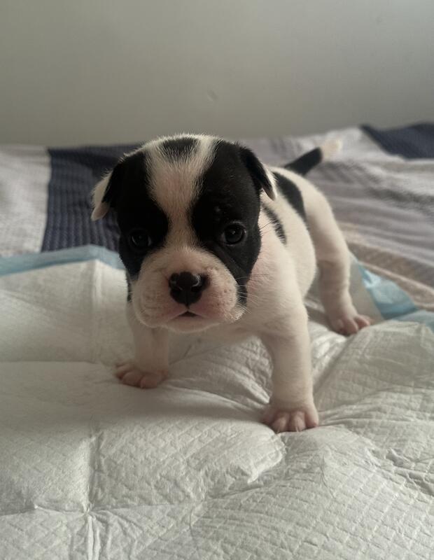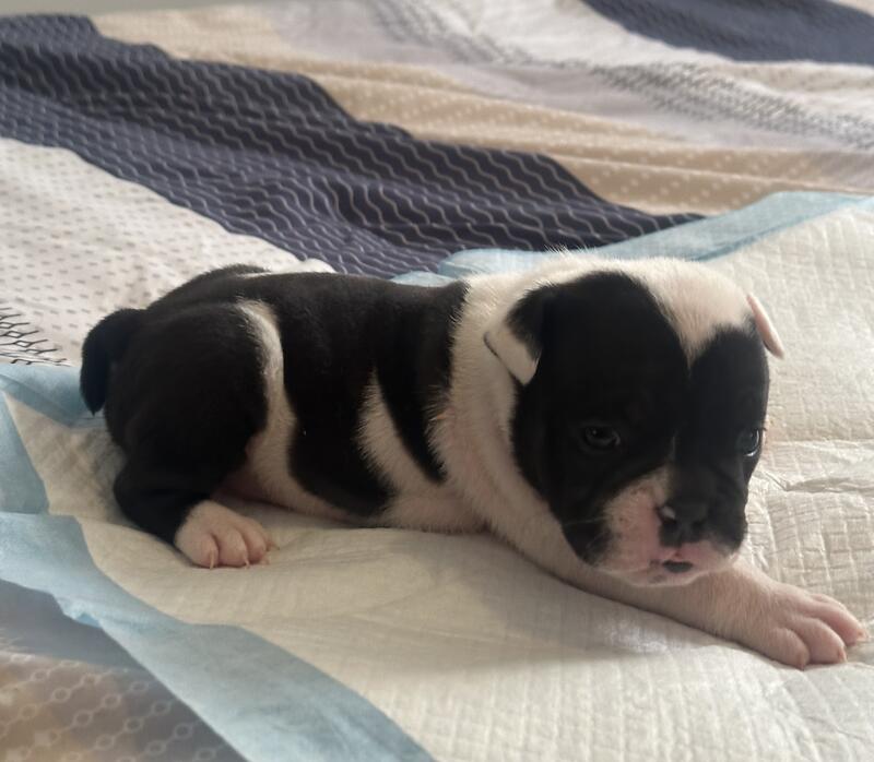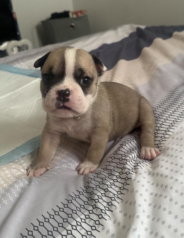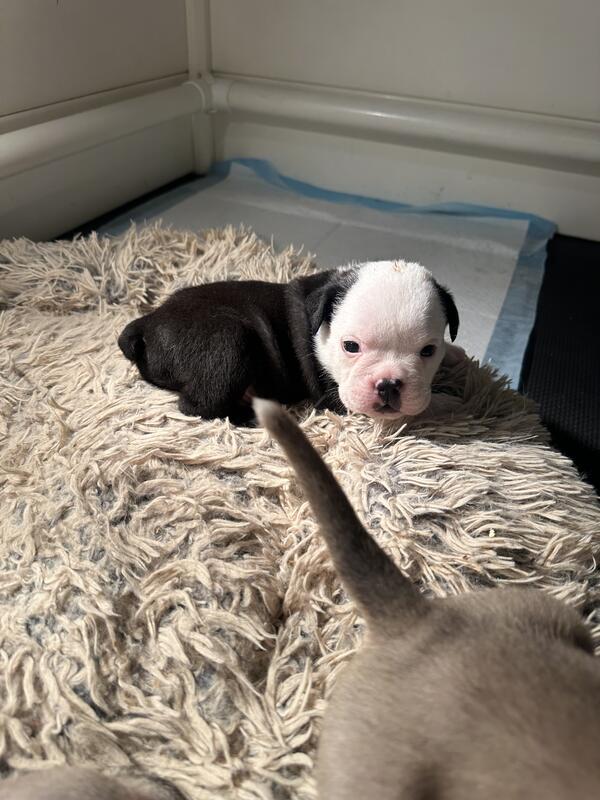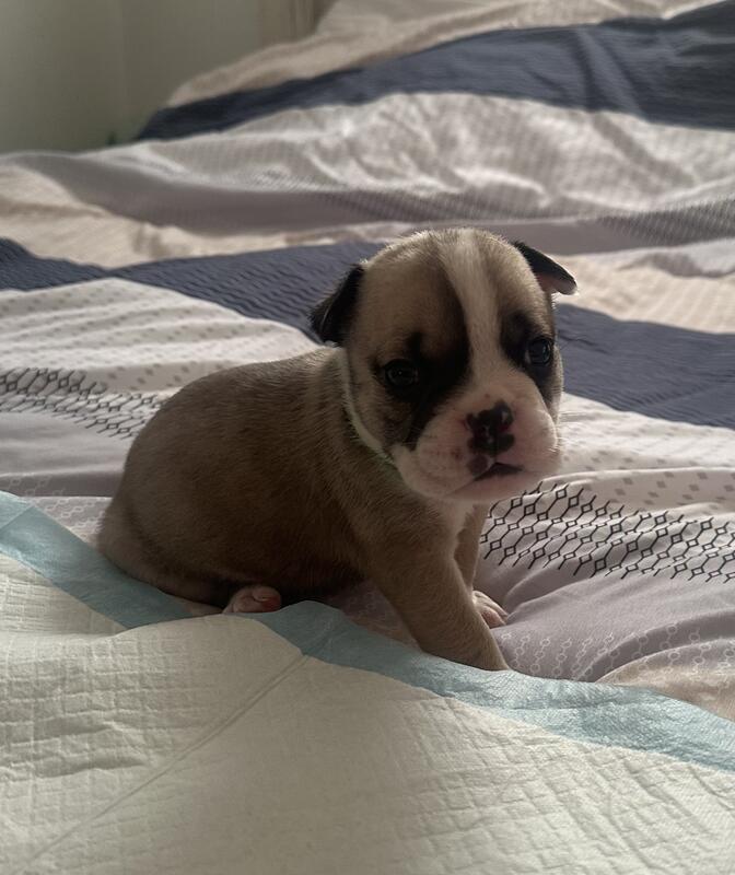 message betsymartell about this ad Hello we have 4 Olde English Bulldogge pups available 2 males and 2 females they have their papers and are registered with the Abkc they also have a very good pedigree they were vet checked at birth and will be again at 6 weeks old they will be ready for their forever homes on December 24th and will be fully vaccinated please message if interested and I can also send videos of the pups the parents are in the picture as well |