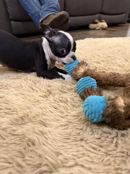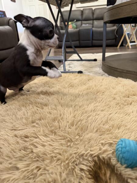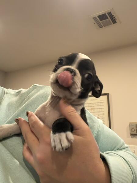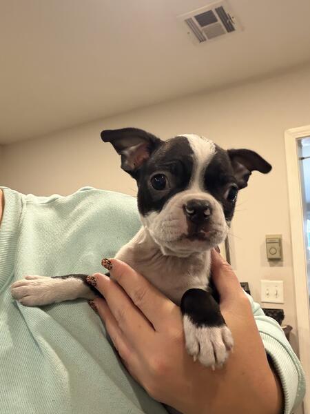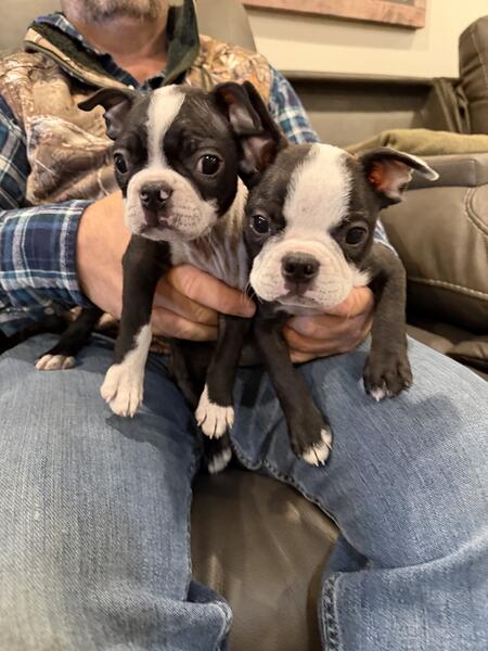 message pogle about this ad Handsome AKC Boston Terrier puppies. This ones name is Joey! They are all very cuddly, cute and friendly. They were born 8/28/25. They will be ready to go to their new home by 10/31. They will come with registration papers, up to date vaccination records, vet check and limited guarantee. To reserve a puppy, we require a $200 non-refundable deposit to hold. Delivery can be via pick-up or shipped. We usually can ship for around $300, we just need your zip code. |
