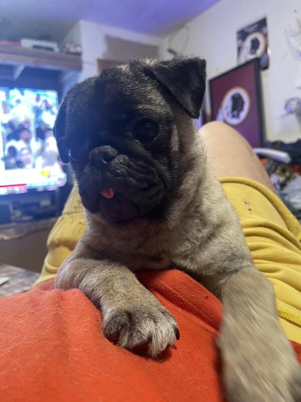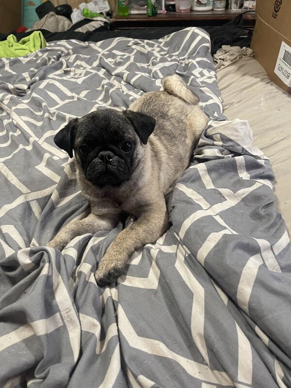 message ls4u2 about this ad Male Pure Breed Pug pup born July 23 2025 utd on shots and dewormed he has a great personality gets a lot of love gets along with other animals -Christmas Desl- Purebred Male Pug $500 |
