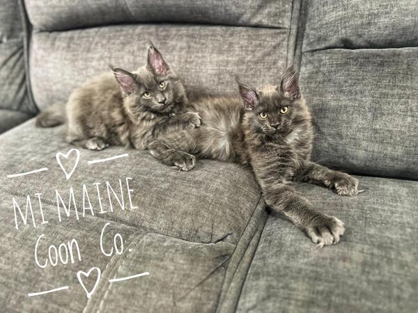 message mimainecoonco about this ad We will have more litters soon. The late pictures are the same kittens at 8 months old. Please follow MI MaineCoons on Facebook for updates! REDUCED to 2200! 100% European Maine Coon kittens were born Aug 10th and will be able to go to their forever homes the last week of October. I have 2 more available. A Solid blue and Blue Smoke. These kittens are the sweetest. Raised and loved with our 4 young child in a cagefree environment since the day they were born. Vet checked and first shots given Mom and dad are very big and I expect these boys to grow over 20+ lbs. Both parents have 100% European bloodlines and have been genetically tested and cleared. Message me if interested! Check out our Facebook group MI Mainecoons or MI Maine Coon Co. Mom is the blue silver tabby and dad is the black smoke! Kittens are microchipped, vet checked and had first vaccine. These boys will be pet home only. We are registered with TICA and CFA! message mimainecoonco about this ad |