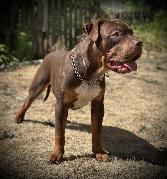 message duke1478 about this ad Name: Kali (Female) Female Chocolate Tri XL American Bully DOB: December 1, 2024 (10 Months/3 Weeks Old) Bloodline: Bossy / Jumanji Sire: Eternal Oath (Bossy Secret Bossy Goodbar) Dam: Bossy Tiger (TopGunBullys Taya Bossy Smokey [Jumanji Kali is a stunning chocolate tri female with heavy Bossy blood and Jumanji influence throughout her pedigree. Shes double-bred on Bossy Secret and Bossy Willy Wonka, giving her that signature Bossy structure, clean movement, and thick bone while still keeping a taller, athletic frame. Shes affectionate, confident, and well-socialized, raised around kids, other dogs, and daily family life. Kali has a calm and super energetic yet playful temperament, making her an amazing fit for a loving home, active family, or someone who appreciates true XL quality. Crate trained and leash familiar Excellent temperament Pet home preferred Kalis going to be a big, beautiful female with tons of presence and that signature Bossy look, thick, clean, and elegant. Serious inquiries only. We are asking a rehome fee for Kali to ensure she goes to a committed, responsible home that values her quality and care. This fee helps cover her upbringing, vetting, and proper care, and also reflects her pedigree and lineage. Serious inquiries only we want her placed in a home where shell be loved, exercised, and well looked after. Contact info: 705-957-9671 Located in Peterborough ONTARIO message duke1478 about this ad |