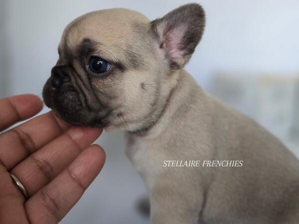 message clckennels about this ad Contact us anytime (909)824-4614 Follow us on IG @stellairefrenchbulldogs We are thrilled to announce the arrival of a stunning litter of puppies born on April 22, 2025! Our beautiful Luna (Cream) was bred to a handsome Black & Tan sire. They have blessed us with 8 healthy, beautiful puppies4 adorable girls and 4 charming boys. About Her: Say hello to this breathtaking 4-week-old sable French Bulldog girl! Her rich coat features a warm fawn base beautifully overlaid with darker sable shading, giving her a striking, expressive appearance thats both unique and true to the breed. She already exemplifies key features of the AKC French Bulldog standard: Compact, well-proportioned frame: With a sturdy bone structure, broad chest, and short back, shes built to impress even at this young age. Classic bat ears: Her signature bat ears are beginning to stand tall, giving her the alert and intelligent expression Frenchies are known for. Short, smooth sable coat: Her luxurious coat showcases the signature sable pattern, with dark-tipped hairs giving depth and character to her already beautiful coloring. Bright, soulful eyes: Her striking blue-gray are Large, round, and full of curiosity. They reflect the affectionate and alert nature typical of the breed. Even at just four weeks old, she is beginning to show a calm, loving demeanor with moments of playful sparkpromising to be a loyal and spirited companion. Raised with attentive care in a home environment, she is on her way to becoming a well-socialized, confident Frenchie. Stay tuned as this sable sweetheart growsshes the perfect combination of beauty, structure, and personality! Blues eyes may change Our puppies are raised with the highest standards using Puppy Culture, Avidog, and BABS programs to ensure they are well-socialized and confident companions. Shipping WORLDWIDE (Buyers expense) She will be ready at 8weeks old June 17th. If your interested feel free to reach out anytime. She will come with LIMITED AKC papers, Vet Checks, up to date vaccines, deworming, health Guarantee, and much more. message clckennels about this ad |