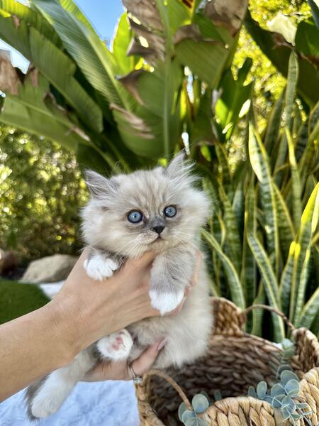 message david357357 about this ad Purebred Persian & Persian/Ragdoll Kittens Rare Colors & Gorgeous Personalities (San Diego) We have five beautiful 8-week-old kittens ready for their forever homes! Each one has a loving temperament, stunning features, and has been raised indoors in a clean, family environment. All kittens are litter trained, eating solid food, and well-socialized with people and gentle handling since birth. Available Kittens: Dolly Persian/Ragdoll Mix Luxurious coat, gentle and people-loving, very affectionate. $1,200 Daisy Persian/Ragdoll Mix Rare coloring with bright, expressive eyes. Calm, sweet, and cuddly. $1,200 Goldie Purebred Persian Golden brown coat with large, soulful eyes. Extremely rare and elegant. $1,700 Snow Purebred Persian Pure white coat with rare green eyes. Graceful, calm, and stunning. $1,500 Toby Purebred Persian White with a unique gray stripe down his nose and striking green eyes. Playful and loving. $1,500 All kittens feature: Sweet, loving temperaments Unique, beautiful coats and eye colors Indoor raised and well-socialized Litter trained and healthy These kittens are truly exceptional and will make perfect indoor companions. Photos and videos available upon request. Serious inquiries onlythese babies will go quickly! Located in San Diego Message me for availability 858-683-9231 message david357357 about this ad |