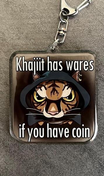 message flyingnimbyco1 about this ad Skyrim gaming character Khajiit accessories. Skyrim Khajiit keychain. Skyrim Khajiit stickers. The art on these keychains are original works! Makes a cute gift for gamers Classic Fantasy RPG series loved by many- Khajiit has wares, if you have coin RPG. Fantasy Games. etsy.com/FlyingNimbyCo |