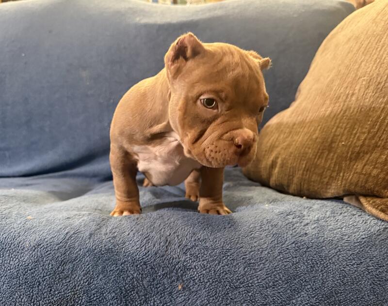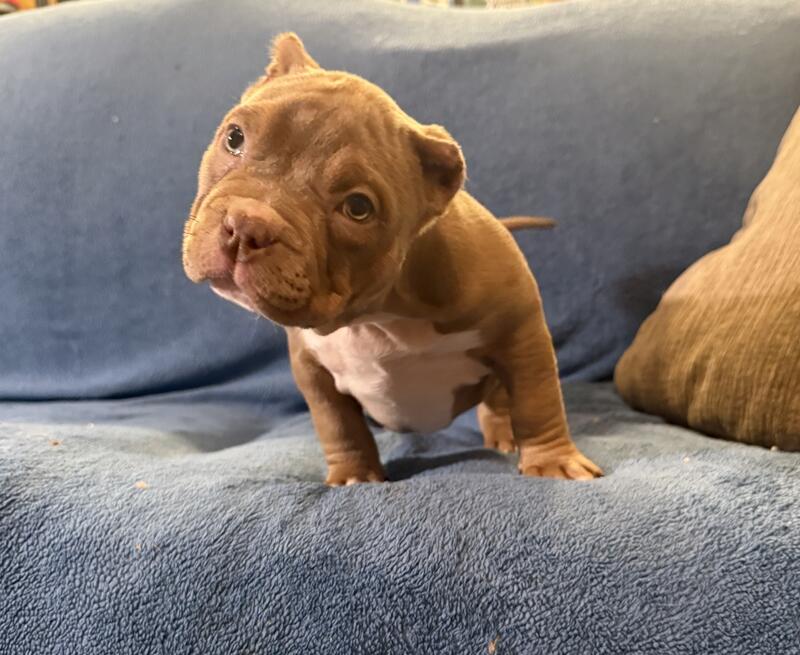 message audriaunna2 about this ad Pumpkin is a stunning American pocket bully. She was born 11-12-2025 and so far has had a healthy vet exam with documentation, first sets of shots and multiple dewormings. She is ABKC registered. Her parents and their pedigrees are in the pictures. Feel free to reach out with any additional questions. |