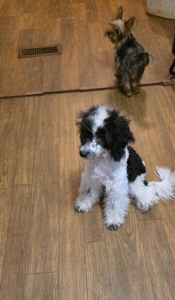 message tinaprince about this ad I have CKC Maltipoo boy puppy, his name is Shaggy, he is white and black with lots of hair and he is hypoallergenic, he has the body and face of the poodle and he has the hair and tail of the Maltese, I gave him a haircut there's some pictures of him with his new haircut, he was born on April 21st 2025, he is ready to go to his forever loving happy home now. He has all his puppy shots been keeping up with his worming.he comes with his CKC paper vaccination records toy blanket puppy pads some food leash and collar. $300 negotiable, I have a Facebook Messenger it's Tina Carlotta Prince if interested you could text me there and I can send you videos of him and more pictures, I'm located in Marietta South Carolina close to Hendersonville North Carolina Travelers Rest and Greenville South Carolina Thank you and God bless |