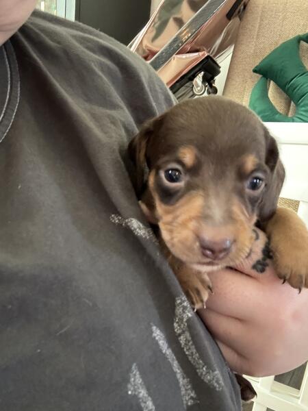 message cnmcr7267 about this ad Mini dachshund puppies born 1/27. 4 boys. Mom is short hair and dad is long hair. Mom and dad were not registered before having puppies. |