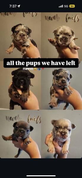 Merel fluffy carrier French bulldog pups papers shots ready to go