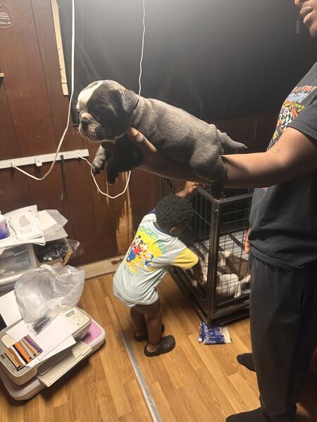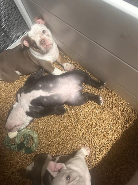 message msjones870 about this ad I have 4 American Pocket Bullies available 1boy which the all-white one and 3girls. They were born April 22, 2025, they are USBR registered, and they have had their first vaccine and will receive the second vaccine Wednesday July 2, 2025. If you are interested in one of these beautiful Babies just leaves me a message, I also deliver fees depends on your location. I can be reach at 8709470910 through TEXT messages I will respond but DO NOT text or call me if you're not serious about purchasing a puppy |