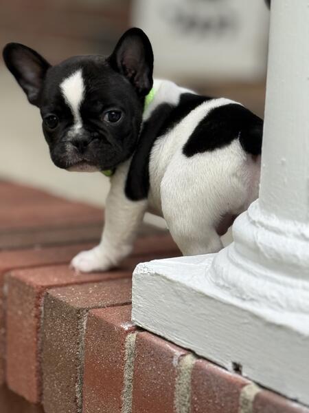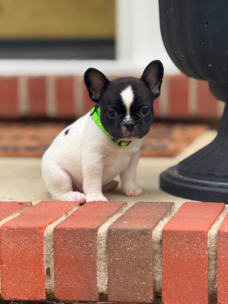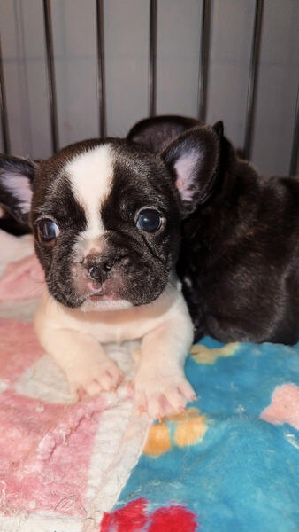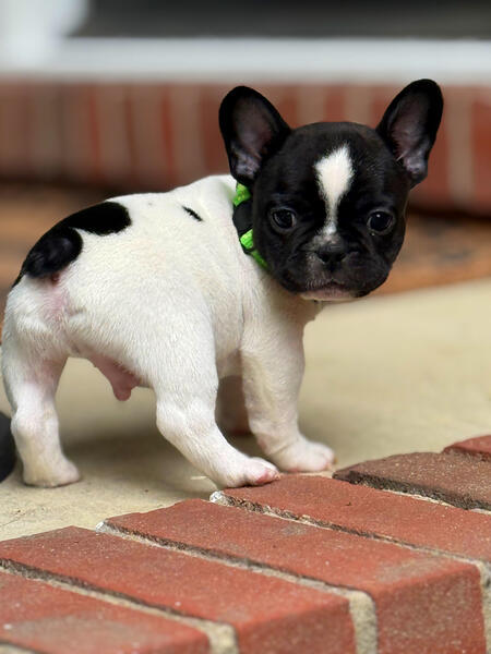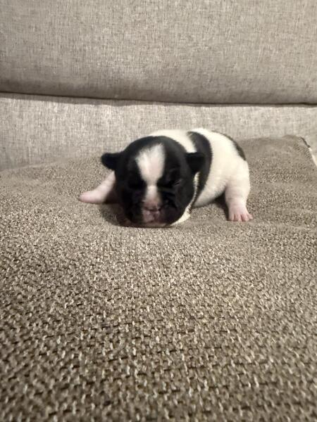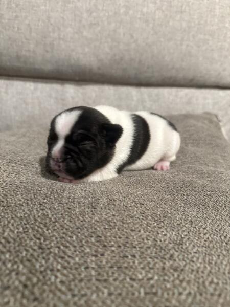 message llsnc5317 about this ad Born 8/6/2025 This little gentleman is a male black & white pied French Bulldog puppystocky, playful, and full of personality. His striking coat is bright white with bold black patches, giving him that classic pied Frenchie look everyone loves. Features: Compact build with that signature Frenchie charm Big bat ears & soulful eyes that will melt your heart Playful, affectionate, and already showing off his silly side Well-socialized and ready to become someones loyal best friend Hes the perfect mix of cuddle bug and clownalways ready for snuggles, but never missing a chance to make you laugh. Vet checked Papered Vaccines Deworming |