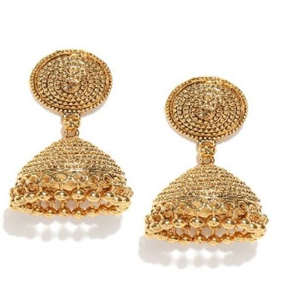 message rohinee about this ad Product Code: 2231565 Gold-plated dome-shaped jhumkas, has textured detail Secured with a post-and-back closure Length: 5 cm Every woman will fall in love with these in-season earrings from Zaveri Pearls. Wear this pair with slick black jeans and a pretty top for your next coffee date. Material: Gold-plated metal httpsmyntr.it/NcaF0Ty |