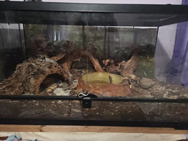 message jllns4674 about this ad Black pastel ball python and 40 gallon bioactive front opening enclosure. Comes with everything inside the tank, and heat element. Small imperfection on the top left side of the tank. Doesn't compromise the integrity of the tank. 250.00 OBO |