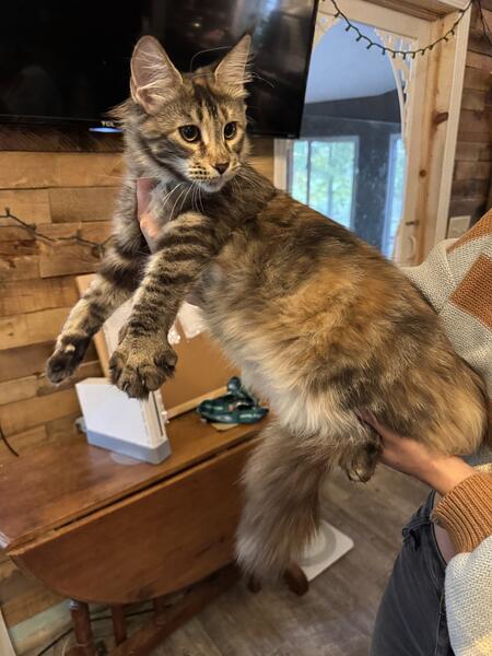 message jfspr6415 about this ad Maine Coon Kittens, CFA registered. Kittens have had all well kitty checkups, deworming, and vaccinations. Kittens are all well socialized and love to be held. They are all litter trained. They will make such great lap cats. Born May 1st. For more pictures please visit my Facebook page. Sold as pets no breeding rights. |