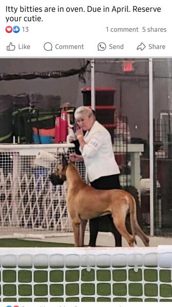 message minnieprincess about this ad D.o.b 4/12 Outgoing playful male. Leash trained Crate trained . Great with children and other animals Current on vaccines and deworming. Healthy lines with ofa testing. American champion pedigree. References available. |