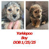 message bnkrh0480 about this ad Yorkiepoos born 1/25/25 Vet visit was 3/13/25 health check and first shots. Dewormed at 4/6/8 weeks Mom is 8lb Yorkie and dad is a 10lb poodle Will meet up to 200 miles from Mexico MO 5737218688 |