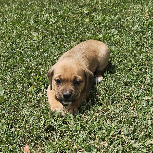 message badapple about this ad Update-only 1 female still available. We have a litter of 3 puggle puppies. 2 females and 1 male available. Ready to go home August 11th. They will have their first set of shots and be dewormed. Mom is a fawn colored pug and dad is an AKC registered beagle. We work on crate training and leash training and they are very well socialized with kids and other animals. |