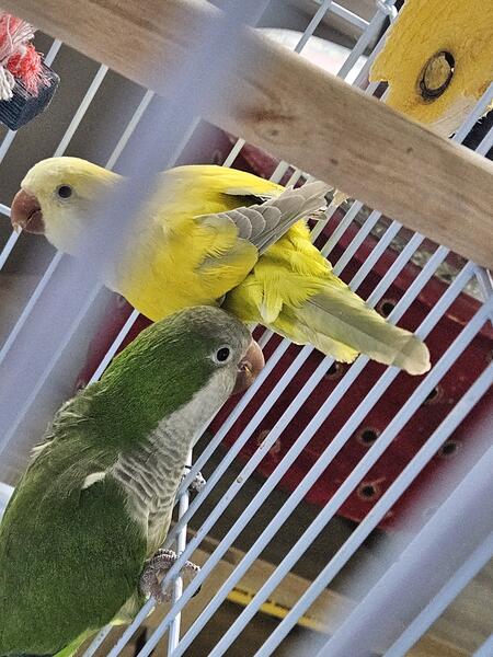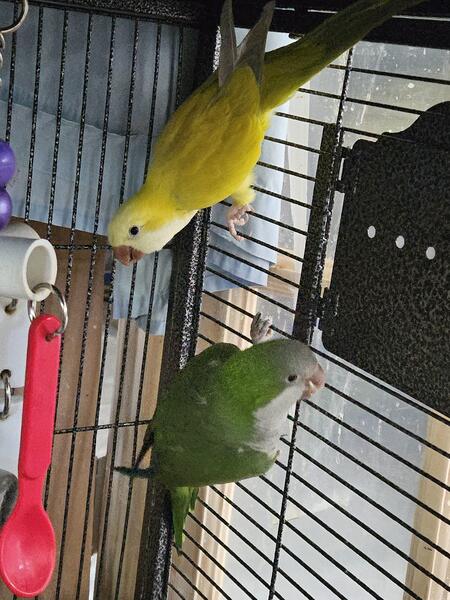 message jbirdsnow about this ad 5-6 years of age. I had gotten this pair when they were around 2 years of age. Female is the Lutino and the male is the Dark emerald green. We have had many babies from them which I still have photos of their babies on my computerCan be sent to you if desired. They are good parents as well. NO SHIPPING! |