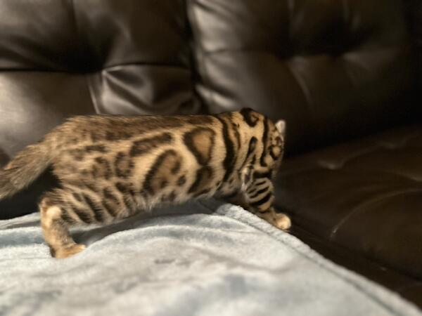 message roxydoberman1 about this ad Tica registered Bengal male, orange brown with rosettes 9 weeks old. Specifically bred for social strengths and calm temperment. The combo makes for a dog like personality and the nest cat you will ever own. Originally were $2000 each but dropped the price to $1000. Reach to pick up in shakopee MN. Call or text 952-649-1531 |