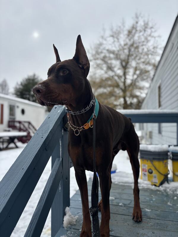 message redempirekennels about this ad Nearly 2 year old (DOB- 3/1/24) I do not plan on breeding him until he is two we are simply testing the waters. -Full Embark Panel (Clear) -AKC registered, (Pedigree will be shown upon request) -Amazing temperament, hes skeptical at first but once he meets you hes super friendly, and I feel like thats an amazing Doberman trait -He has loads of IGP potential that I just havent had the opportunity or time to work him in (both parents participated in IGP sports) -Loves all other dogs and is very playful -medium to high drive loves the bite sleeve -will throw the prettiest reds (maybe Im biased) Serious inquiries only text- 302.423.7021 |