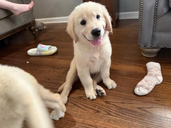 message mtthw566 about this ad AKC Golden Retrievers angels in fur costumes! These little ladies are 11 weeks old, up to date on vaccines and ready to go home! Dad is health and hip tested light golden and mom is English Cream with health-tested parents. Come meet your golden girl in Vidalia/Ailey Georgia. |