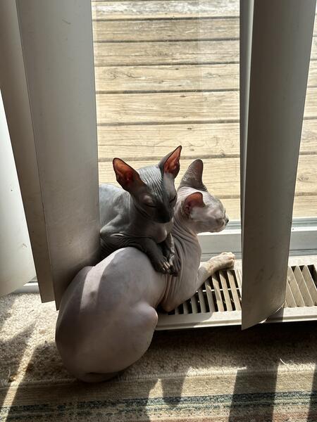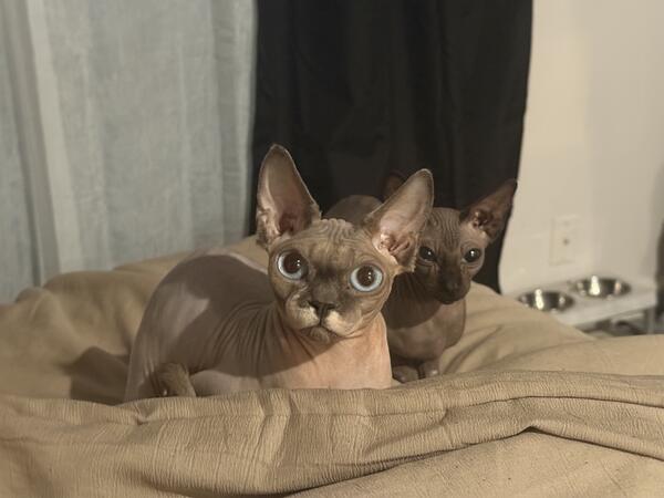 message rozellej about this ad Meet Bean (male, 1 year) and Nova (female, 2 years, TICA registered) two affectionate and playful Sphynx cats who are looking for their forever home. Both are litter box trained, no spraying, have had all their shots and are not spayed/neutered. While Nova has experienced heat, Bean has not shown interest in mating. These two share a beautiful bond they snuggle, nap, and play together daily, and they also love curling up with us for warmth and affection. Sunbathing by the window is one of their favorite things to do! They do wonderfully with other cats and dogs, making them a great fit for multi pet households. We are sadly looking to rehome them due to downsizing, and its important to us that they go to a loving home, ideally together since they are so bonded. If youre interested or have any questions, please reach out. Serious inquiries only. These sweet babies deserve the best! |