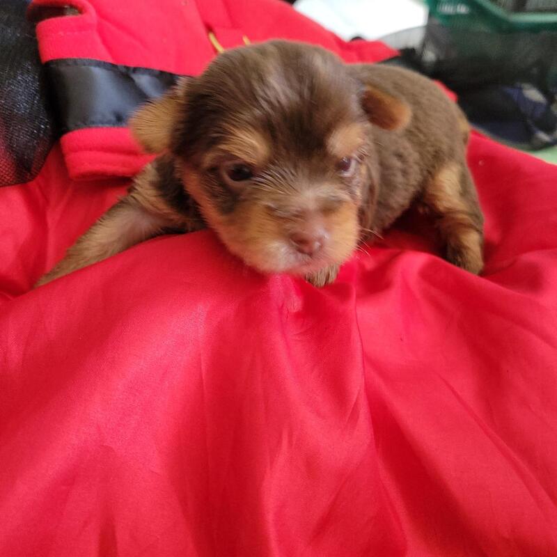 message nikkiburk about this ad Chocolate female yorkie born November 16th, 2025. She comes with tail & declaws docked, dewormed, first puppy shot, vet certificate of health, purebred CKC registration papers, optional microchip, sample food & toy for $2500. Currently 4 oz. Ready at 8 weeks old. Both parents here for you to meet as they are our personal pets. Located in North Port, Fl. 18 years of experience, |