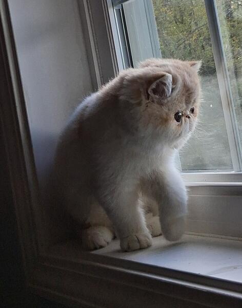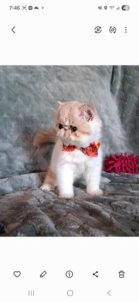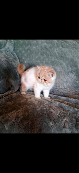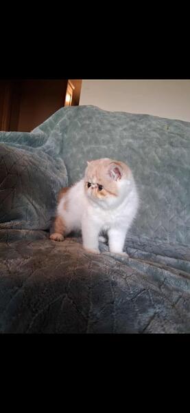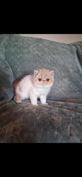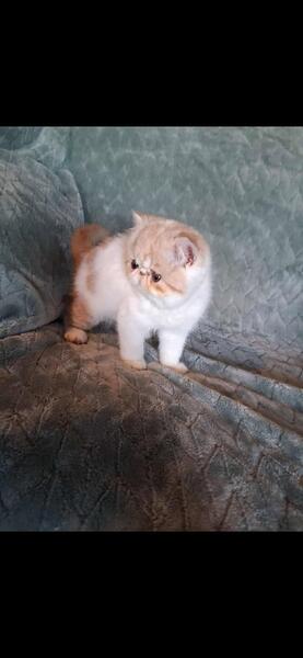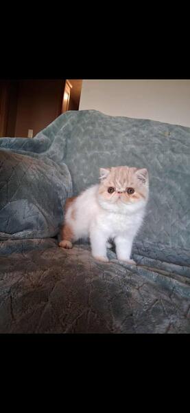 message fiveoaks2016 about this ad CFA Exotic Shorthair, cream and white female. This girl is going to be nice. Cobby body with beautiful, big eyes, nice nostrils and well placed nose, little ears that I think will sit nicely on her head, with a sweet little tail. PATLEN, GRANDHEART, LIONLILY, EMPATHYCAT bloodlines. She has a lot of potential to do very well on the show table with her extremely playful, sweet personality. She has all the pieces and genetics to be very special as she continues to grow. Breeding rights available for added cost. She is extemely sweet and would love to be someone's forever companion. Southern Indiana. Can meet closer for mileage fee. |