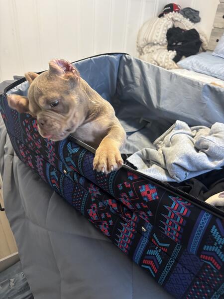 message cjmflower about this ad Lilac and tan micro bully. Absolutely beautiful personality! He should weigh between 30-40lbs solid. He has papers and I have pictures of mom dad and lineage |