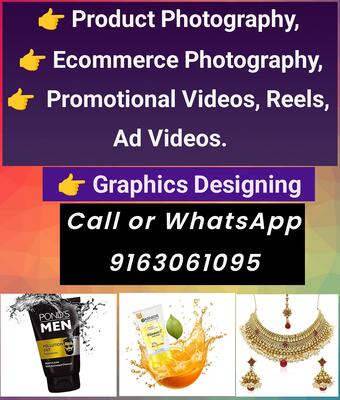 Product Photography, Ecommerce Photography, Reels, Ad Videos, Graphics Designing