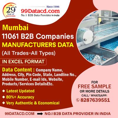 Are you seeking for list of manufacturing companies' data in Mumbai? Look no further! Visit 99Data...